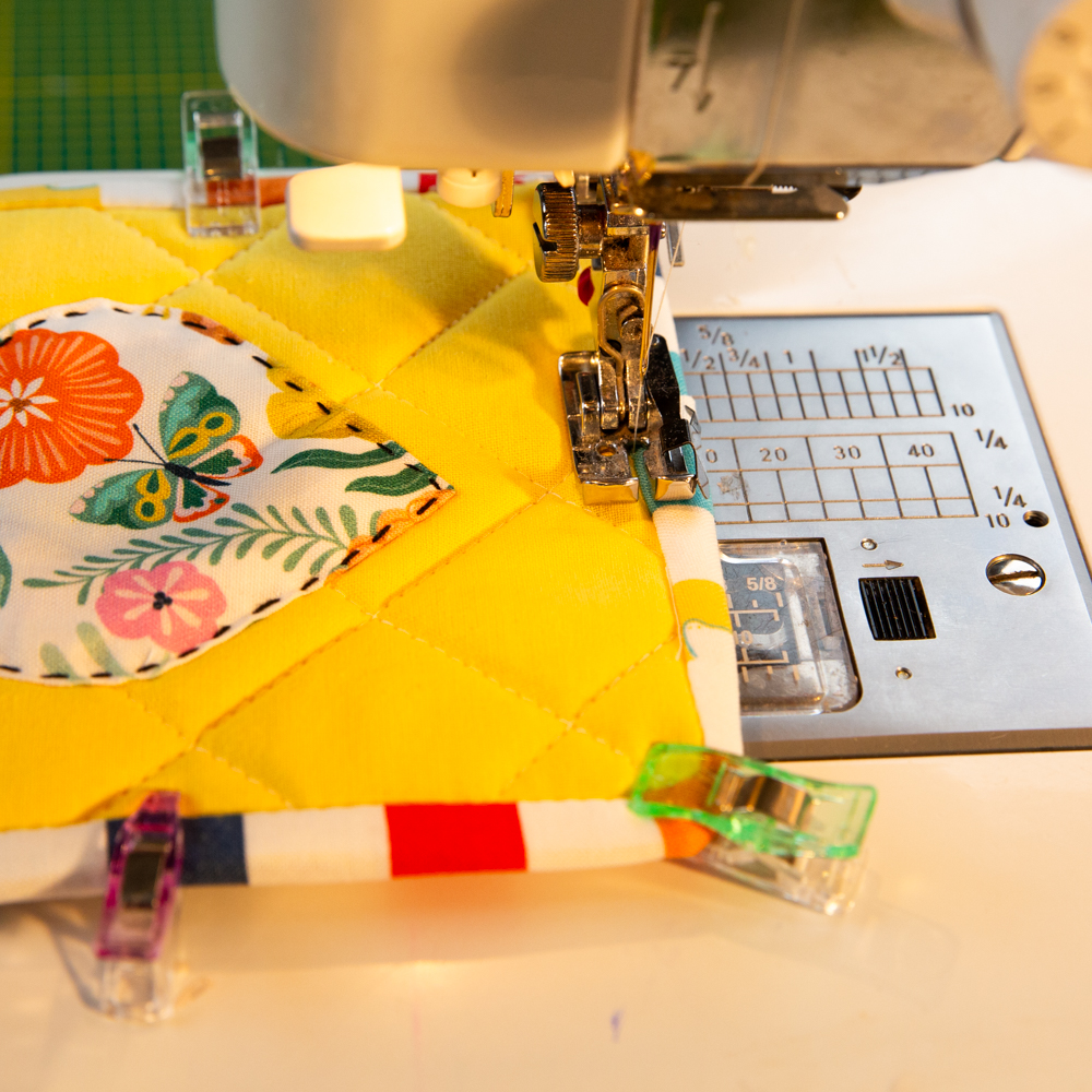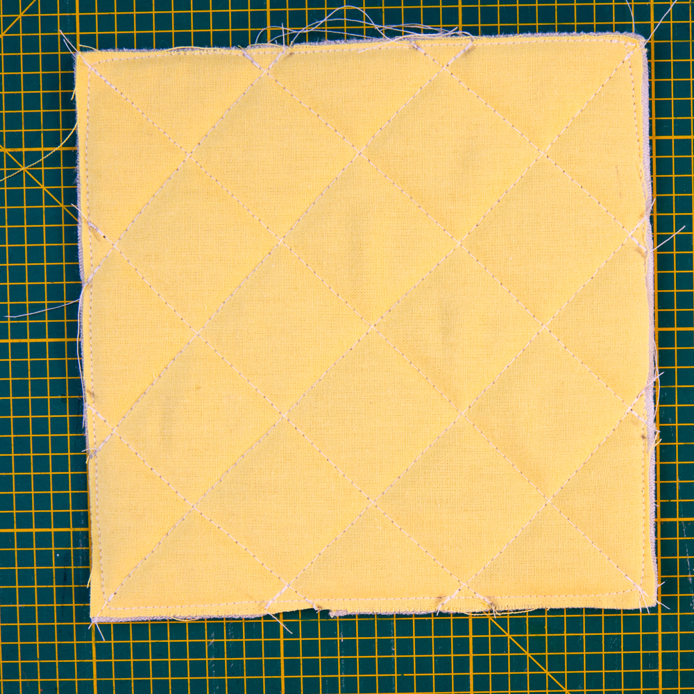 Step 2: Stepping Stitching – Sew parallel quilting lines with a spacing of 3 cm (1.2”). Repeat in the perpendicular direction to create a grid pattern.
