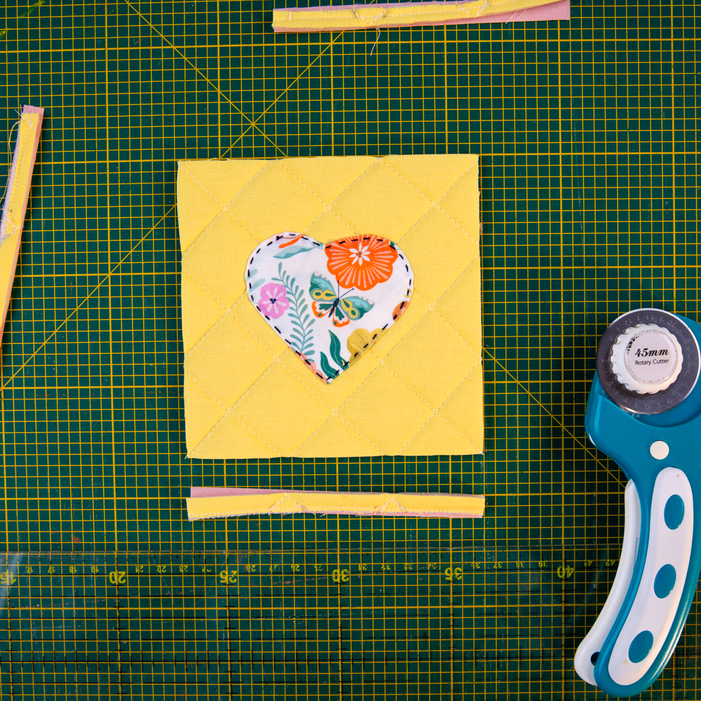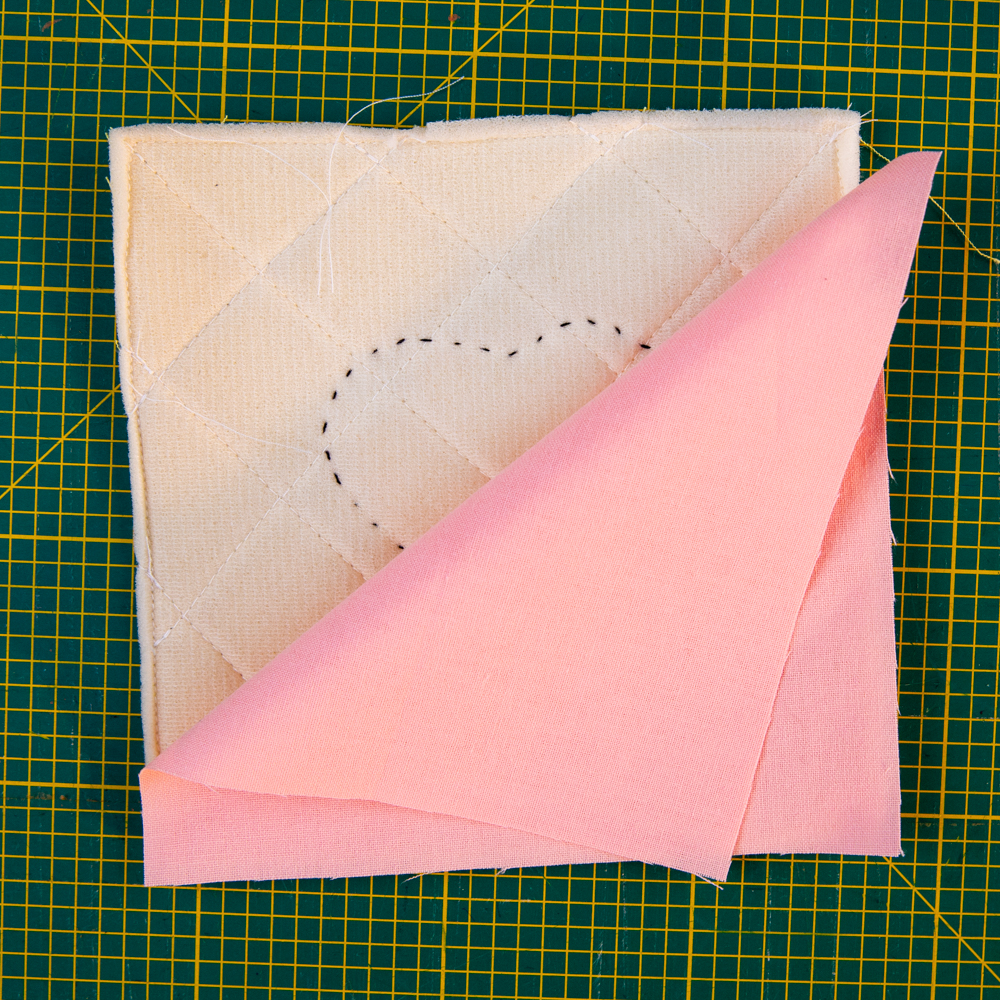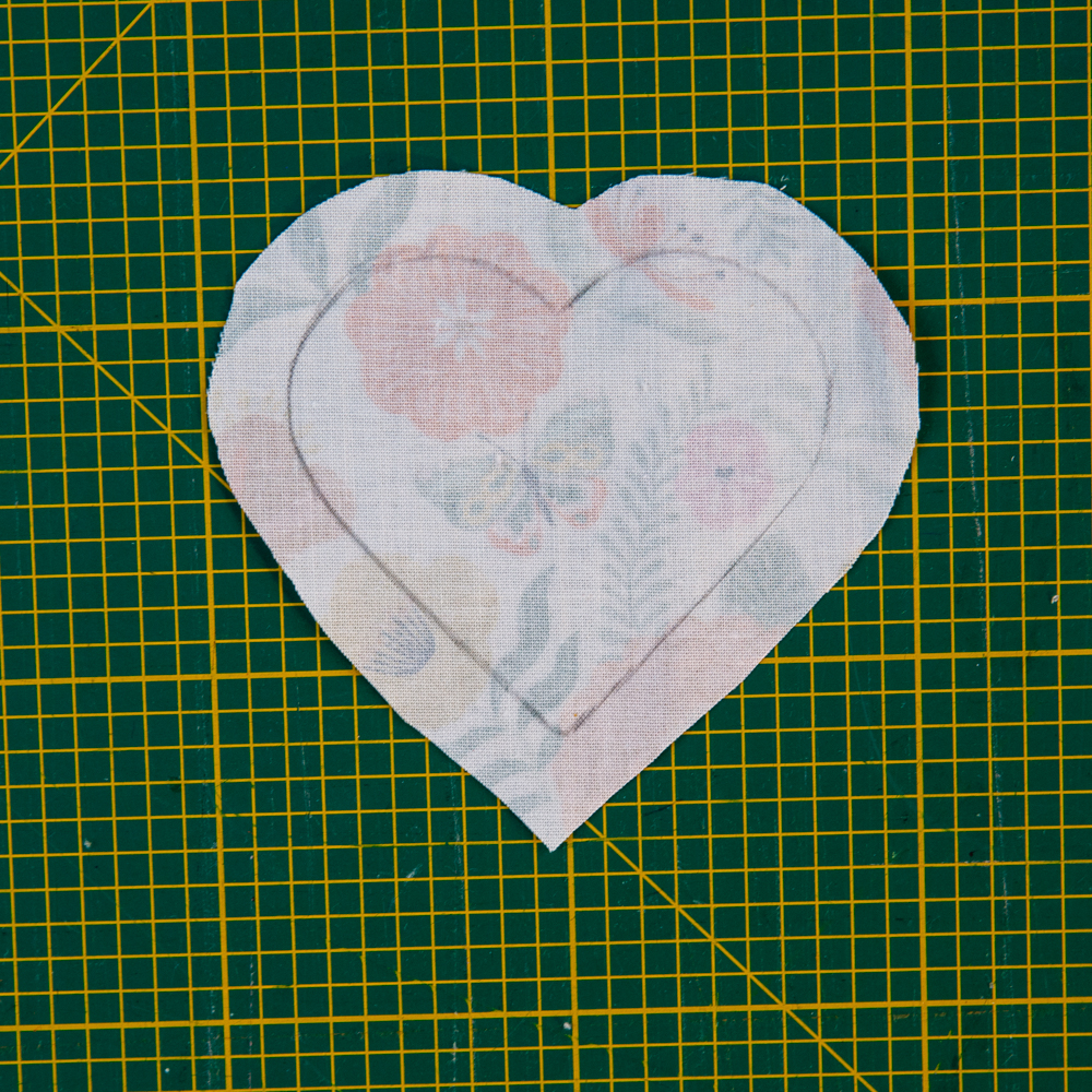 Step 3: Draw the Heart Shape – Sketch a heart shape onto the quilted fabric and leave a 1.5 cm (0.6”) seam allowance.