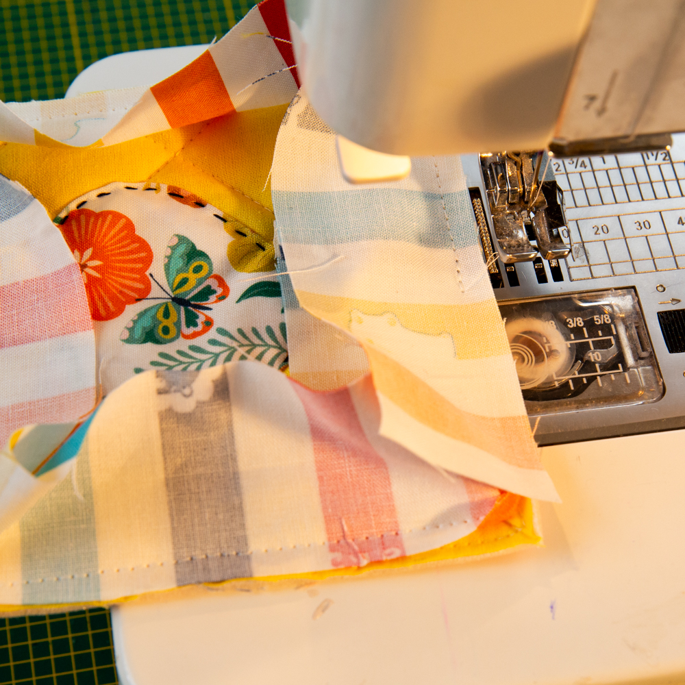 Step 10: Final Sewing Step – Sew along the seam between the fabrics with a sewing machine to hide the stitching. Your coaster is now complete!
