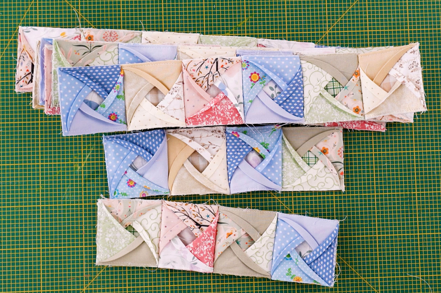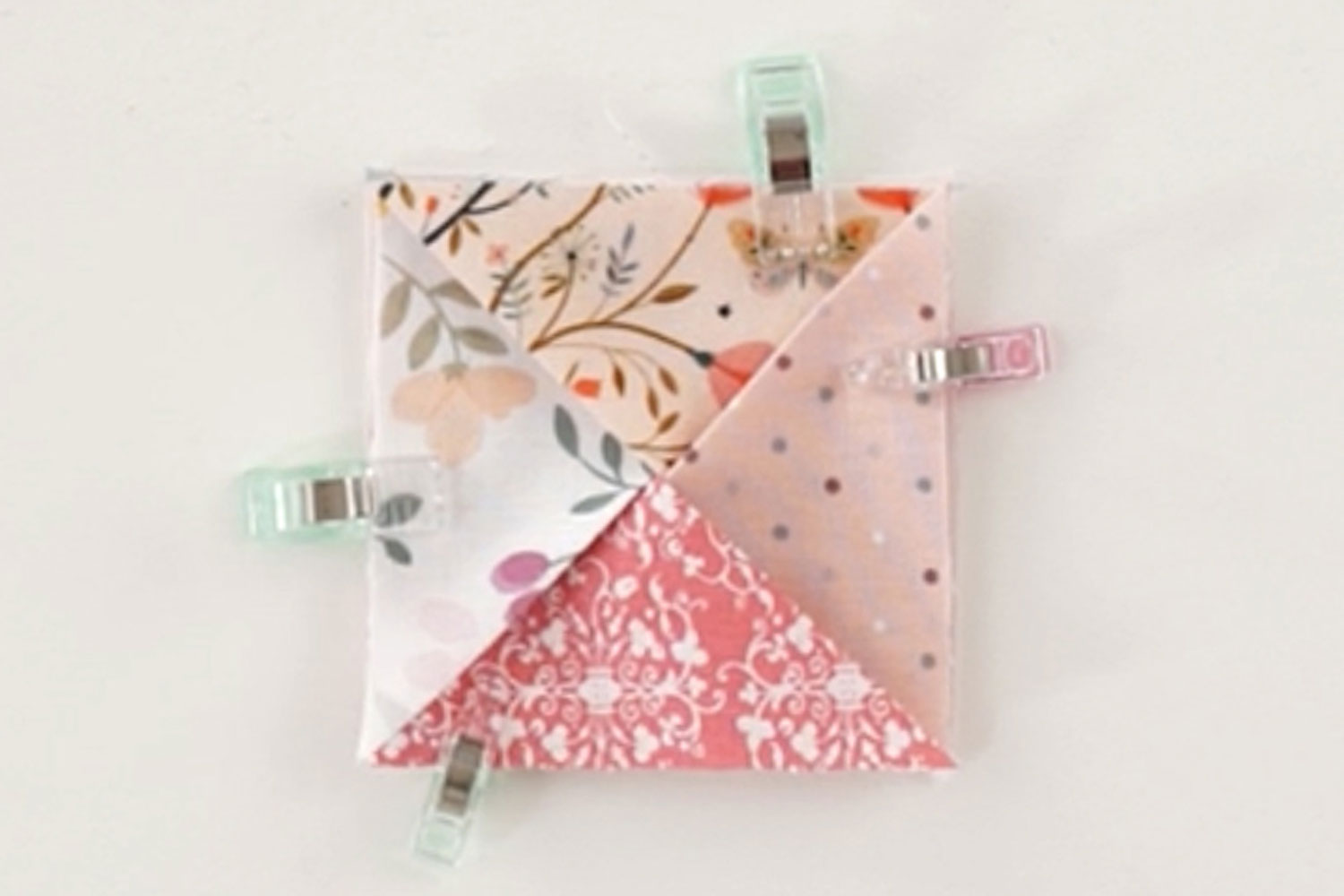 For this technique, five squares are folded together to create one structured block.